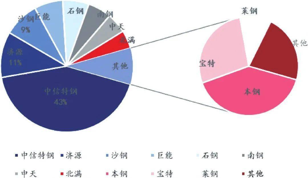 2.各大軸承鋼生產(chǎn)企業(yè)產(chǎn)量占比
