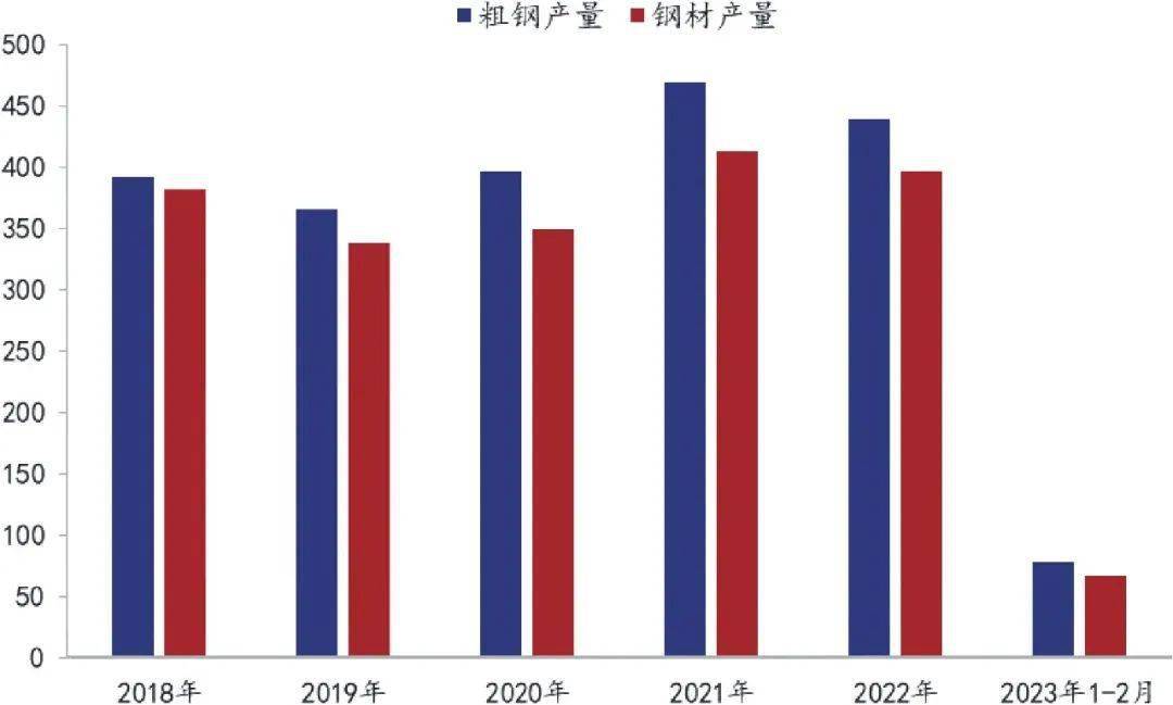 圖1 2018至今全國軸承鋼粗鋼及鋼材產(chǎn)量變化(單位:萬噸)