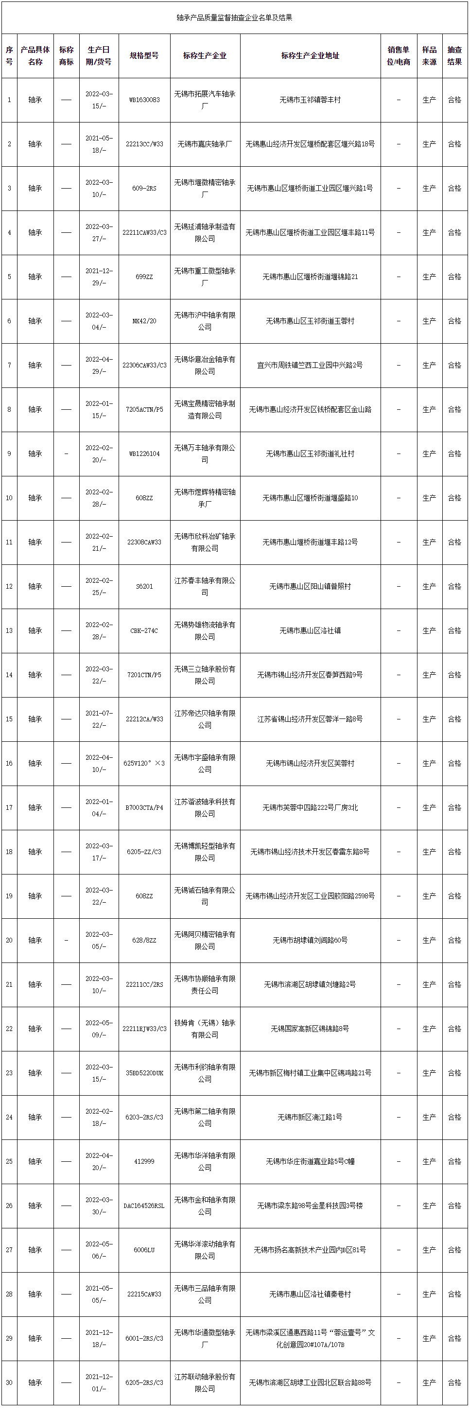軸承產(chǎn)品質(zhì)量監(jiān)督抽查企業(yè)名單及結(jié)果
