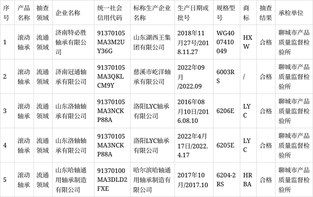 近日,濟南市市場監(jiān)管局發(fā)布2022年濟南市滾動軸承產(chǎn)品質(zhì)量監(jiān)督抽查結(jié)果。2022年濟南市監(jiān)督抽查共抽查滾動軸承產(chǎn)品5批次,其中,流通領(lǐng)域5批次。