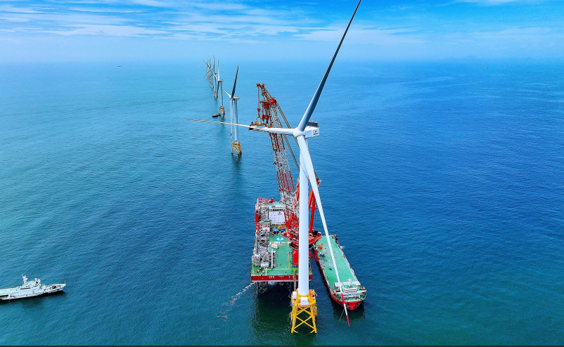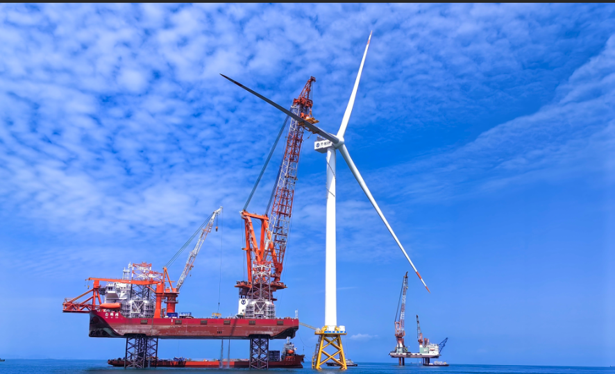 在位于福建省北部海域,由三峽集團(tuán)與金風(fēng)科技聯(lián)合研發(fā)的首臺(tái)16兆瓦海上風(fēng)電機(jī)組今日成功吊裝。16兆瓦海上風(fēng)電機(jī)組的葉輪直徑252米,葉輪掃風(fēng)面積約5萬(wàn)平方米,輪轂高度達(dá)152米,是全球范圍內(nèi)單機(jī)容量最大、葉輪直徑最大、單位兆瓦重量最輕的風(fēng)電機(jī)組,標(biāo)志著我國(guó)海上風(fēng)電大容量機(jī)組在高端裝備制造能力上實(shí)現(xiàn)重要突破,達(dá)到國(guó)際領(lǐng)先水平。