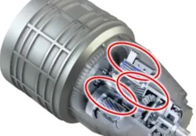 該產(chǎn)品通過改進保持架、滾針和行星軸的組件,并將滾針軸承與行星軸配套,提高了其耐剝皮性、高速性和力矩載荷能力,以適應(yīng)苛刻的小型化、高速化同軸e-Axle環(huán)境,為車輛的燃油和能源效率做出貢獻。該“同軸e-Axle行星減速機用滾針軸承單元”適用于EV·HEV中的同軸e-Axle系統(tǒng),具體應(yīng)用于紅圈標注的部分。