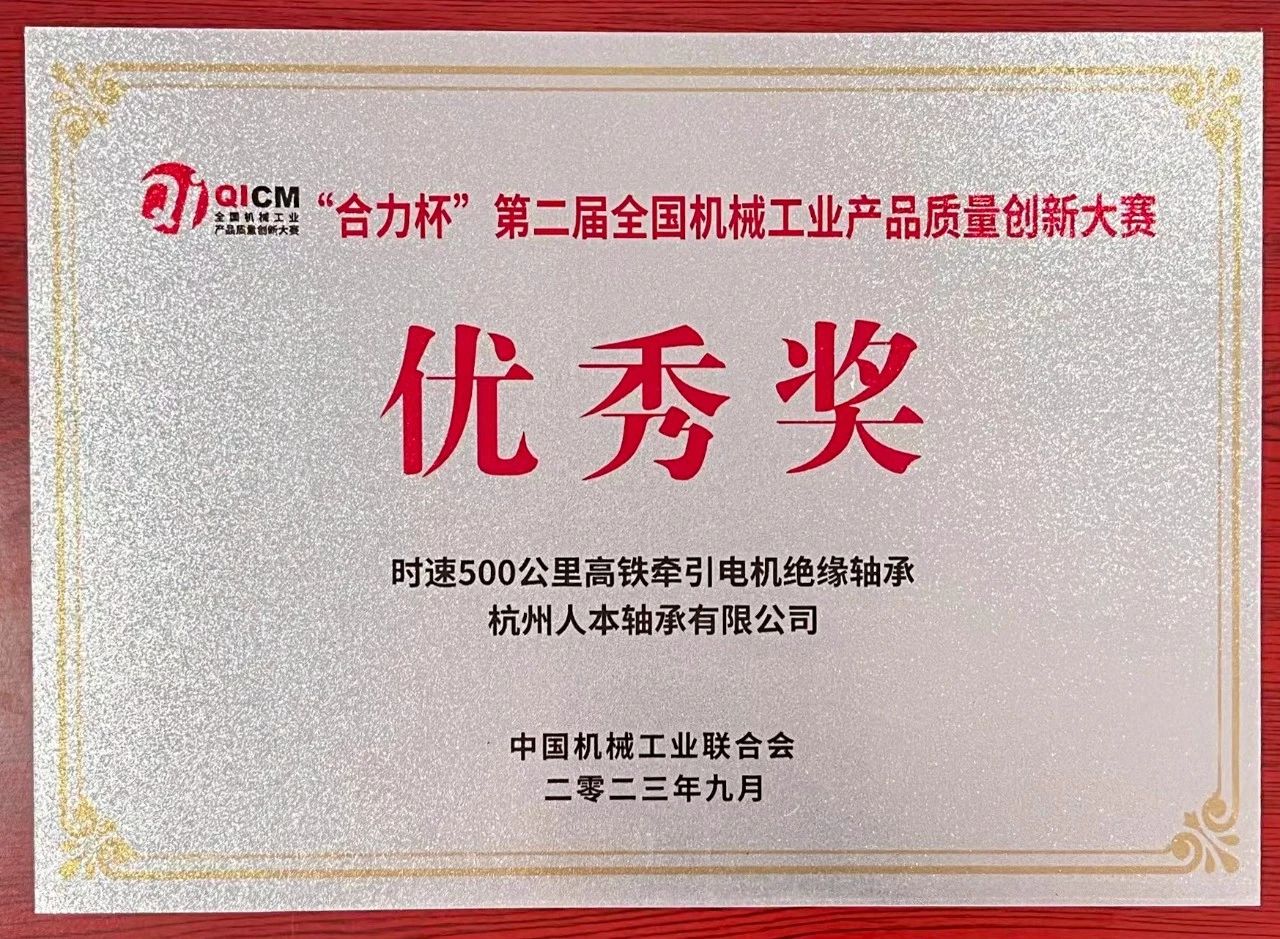 近日,從“合力杯”第二屆全國機(jī)械工業(yè)產(chǎn)品質(zhì)量創(chuàng)新大賽頒獎(jiǎng)盛典暨中國機(jī)械工業(yè)產(chǎn)品質(zhì)量創(chuàng)新論壇上傳來捷報(bào),杭州人本軸承有限公司申報(bào)的“時(shí)速500公里高鐵牽引電機(jī)絕緣軸承”項(xiàng)目在眾多申報(bào)項(xiàng)目中脫穎而出,榮獲優(yōu)秀獎(jiǎng)。