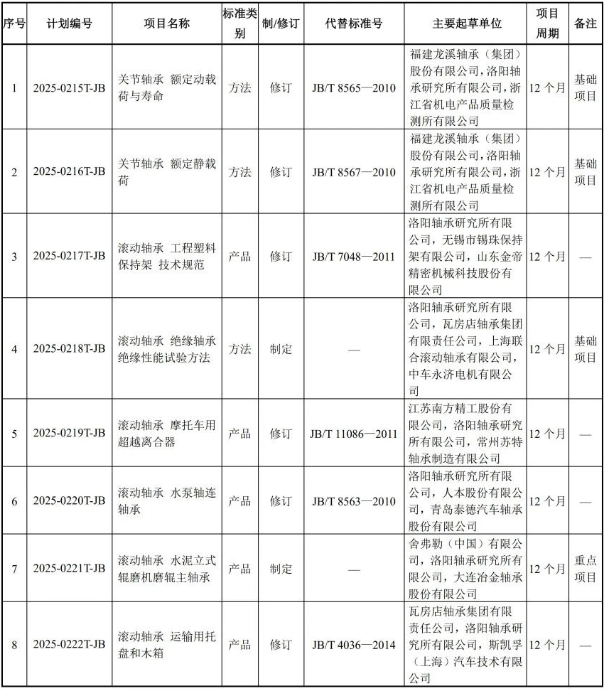 值得關(guān)注的是,滾動軸承領(lǐng)域在本次計劃中占據(jù)了重要位置,共有8項相關(guān)標準被列入。這些標準的制定或修訂將為滾動軸承行業(yè)的技術(shù)升級和規(guī)范化發(fā)展提供有力支持。