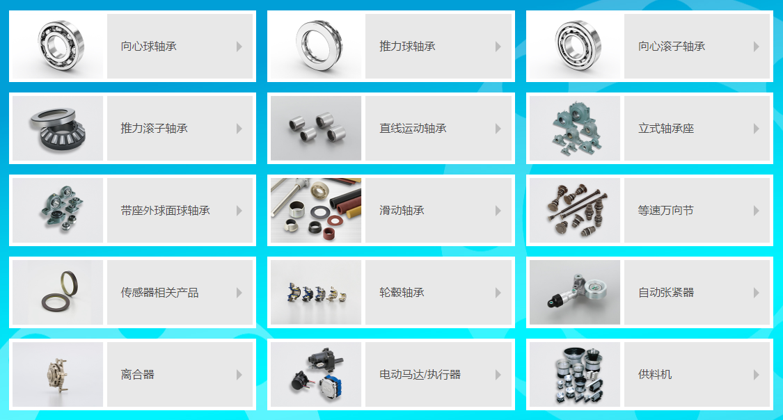 3.除此之外,日本NTN軸承主導(dǎo)產(chǎn)品還有:NTN滾動(dòng)軸承、NTN深溝球軸承、NTN高精度軸承、NTN調(diào)心軸承、NTN帶座軸承、NTN平面球軸承、NTN短圓柱滾子軸承、NTN直線導(dǎo)軌軸承、NTN滾珠絲桿軸承、NTN微小型直線導(dǎo)軌軸承、NTN交叉滾子導(dǎo)軌軸承、NTN往軸承復(fù)旋轉(zhuǎn)襯套軸承、NTN軸承滾珠滑組、NTN軸承凸輪從動(dòng)軸承。