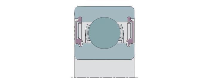防塵蓋的設(shè)計通常是一個將一個金屬的防護蓋安裝于軸承外圈內(nèi)側(cè),防塵蓋內(nèi)側(cè)與內(nèi)圈外表面留出很小的間隙,避免較大的污染顆粒進入。如下圖所: