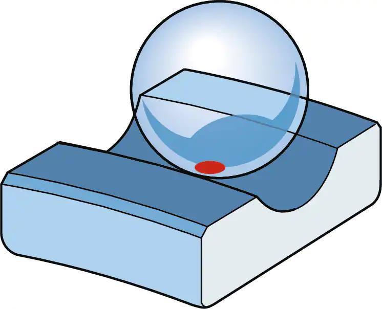 球與軸承圈滾道進(jìn)行點(diǎn)接觸(圖 2)。隨著作用于軸承的載荷越來(lái)越大,接觸點(diǎn)變成一個(gè)橢圓形區(qū)域。接觸區(qū)域小,則滾動(dòng)摩擦也小,從而使得球軸承能夠在適應(yīng)高速運(yùn)行,但限制了其承載能力。