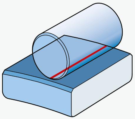 滾子與軸承圈滾道進(jìn)行線接觸(圖 3)。隨著作用于軸承的載荷越來(lái)越大,接觸線會(huì)變成一種矩形。由于接觸區(qū)域變大以及由此導(dǎo)致的摩擦變大,與同尺寸的球軸承相比,滾子軸承可承受更重的載荷,但轉(zhuǎn)速較低。