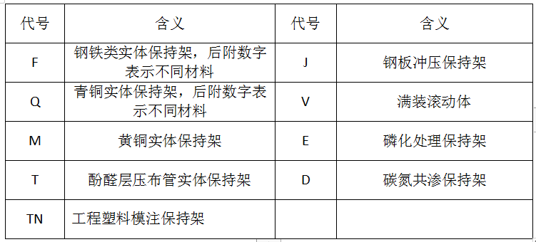 ● 保持架結(jié)構(gòu)、材料的代號(hào)