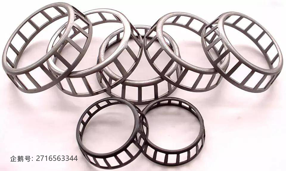 2、低碳鋼或低碳合金圓鋼:大型軸承和生產(chǎn)量小的軸承通常選用低碳鋼車(chē)制造的保持架,這種鋼制的保持架強(qiáng)度高,噪音低,但其重量大,在高速下的離心力受到負(fù)荷也很大。