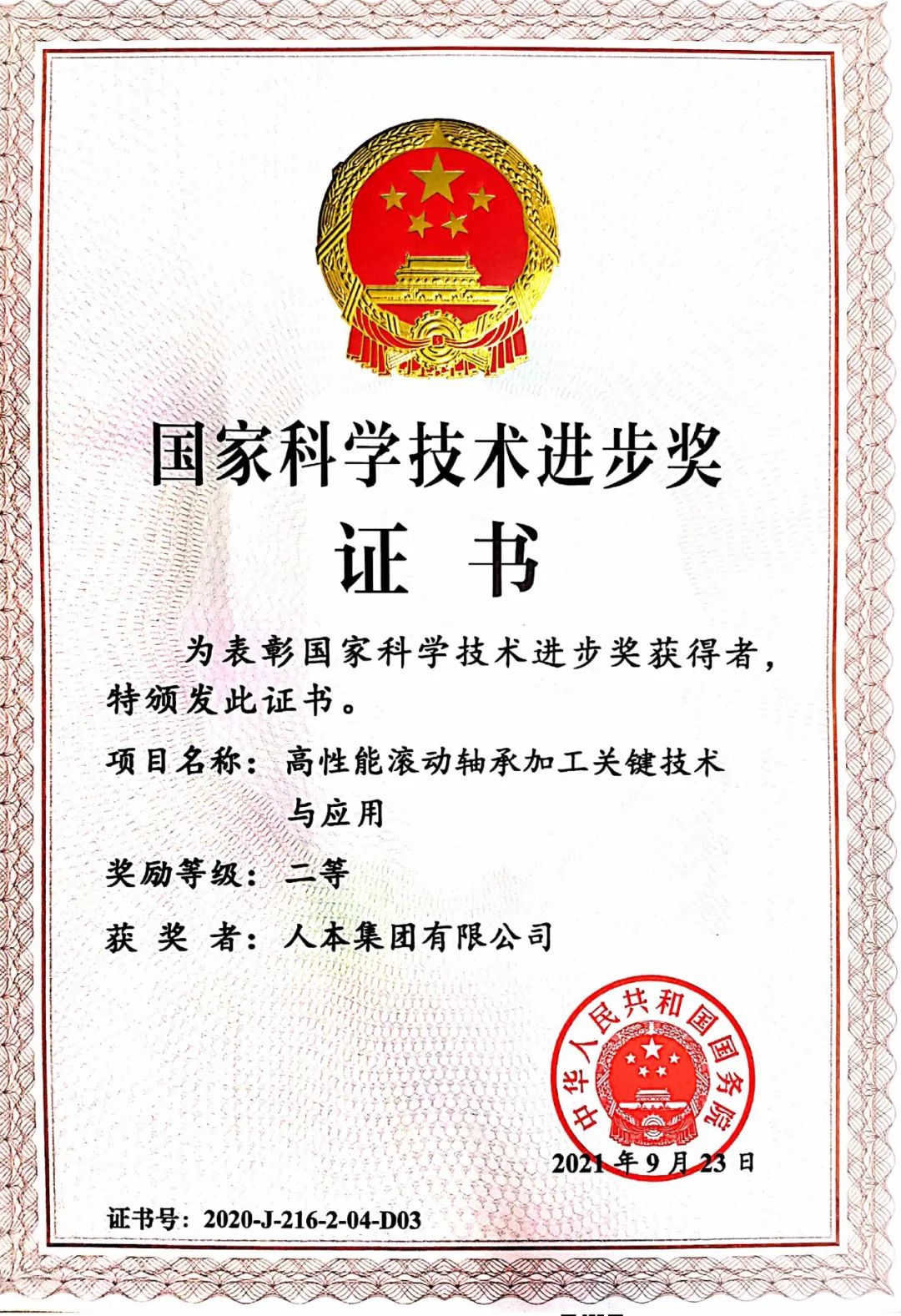 近日,在舉行的國家科學(xué)技術(shù)獎勵大會上,人本集團(tuán)作為主要完成單位的科技成果“高性能滾動軸承加工關(guān)鍵技術(shù)與應(yīng)用”,獲得2020年度國家科學(xué)技術(shù)進(jìn)步二等獎。
