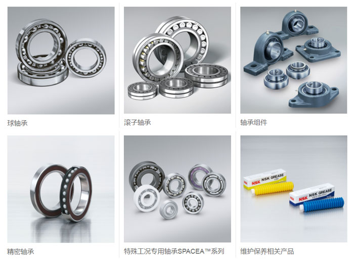 6) NSK提供各種具有長使用壽命及高極限轉速性能的軸承。這些產(chǎn)品,為提高在開采現(xiàn)場及工程現(xiàn)場等惡劣工況下使用的機械設備的生產(chǎn)效率及降低其維護保養(yǎng)成本做出貢獻。