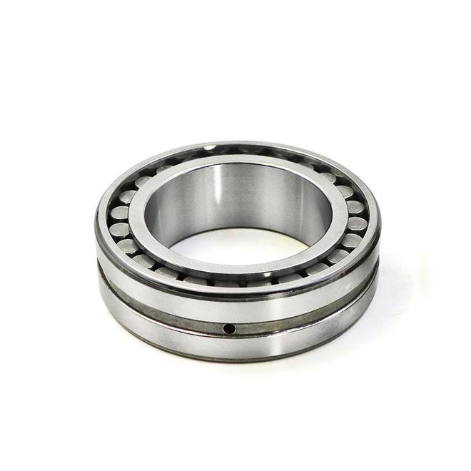 3、為無密封軸承,外圈無擋邊,帶有油溝及三個(gè)潤滑孔。內(nèi)圈帶有三個(gè)擋邊。外圈中間裝有一個(gè)固定環(huán)在兩排滾子之間,可以防止?jié)L子掉出,保持軸承為一體。此系列軸承可容許軸與軸承座之間有必然的軸向位移在軸承內(nèi)發(fā)生。因?yàn)榭梢宰鳛楦?dòng)端軸承。